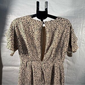 She + Sky Tan Flutter Sleeve Sheath Dress with open back.