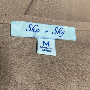 She + Sky Taupe Ruffle Sleeve Top Size Medium