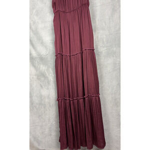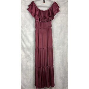 She + Sky Tiered Ruffle Maxi Dress Size M Wine On/Off Shoulder Boho Romantic
