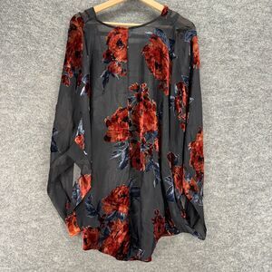 She + Sky Top Women M Medium Gray Floral Open Front Long Sleeve Cotton Casual