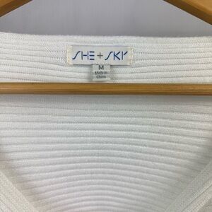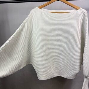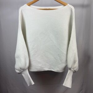 She + Sky White Boat Neck Sweater with Balloon Sleeves Size Medium
