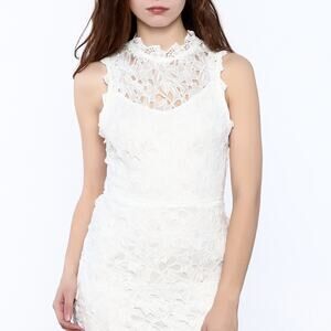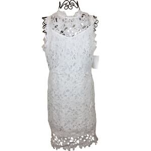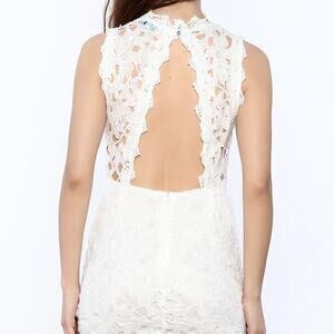 She & Sky White Floral Lace Dress Size LARGE Backless Sleeveless Sexy Sheath