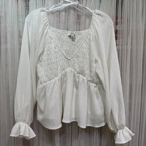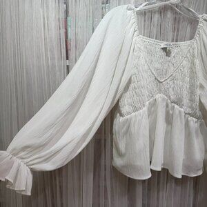 She + Sky White Peasant Balloon Sleeve Top Size Large Romantic Boho Medieval