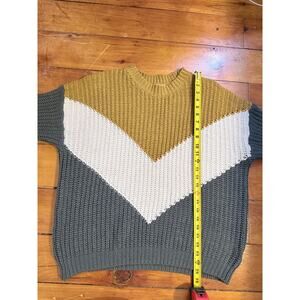 She + Sky womens chunky knit chevron in yellow, grey and white over sized sweater, One size. In great condition, ready to ship.