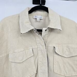 She + Sky Women's Distressed Frayed Hem Corduroy Button Down Shacket Large