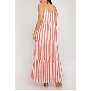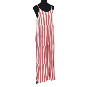 She + Sky Womens Striped Adjustable Strap Tiered Maxi Dress White Coral Medium