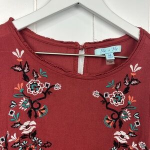 She & Sky Womens Tunic/Mini M Terra Cotta Pullover Sleeveless Embroidery Back Keyhole w/ Button Close Cotton/Poly Soft Comfy Casual EUC