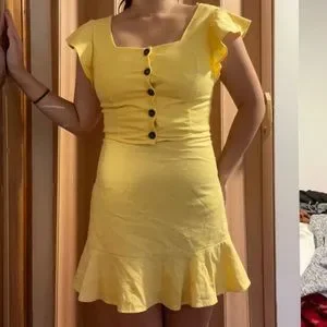 Super cute yellow set! Top is a M and bottom is L. I am 5’7” and 140 for reference!