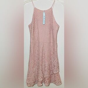 She and Sky Pink Floral Lace Ruffle Layer Dress size M NWT
