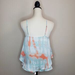 Brighten up your wardrobe with this cami in a vibrant turquoise blue and coral orange tie-dye print. This sleeveless pullover features adjustable spaghetti straps, a straight fit, and a lightweight polyester fabric with a lined interior for comfortable wear. Easy to dress up or down, it’s perfect for sunny days, beach trips, or layering under a jacket for a pop of color.