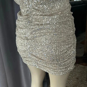 she and sky dress New ArrivalBlack Sequin Shoulder Padded Ruched Dress.