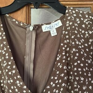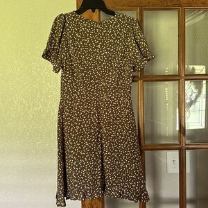 She and Sky v-neck floral print dress. Olive colored with white flowers and zip-up back.