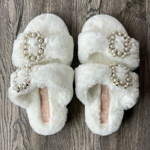 She is Cheval Shoes White Faux Mink Neverending Story Slippers Size 7 Bridal