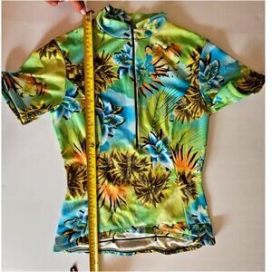 SheBeest Half Zip Tropical Cycling Jersey, Back Pockets, Bicycle, Touring, Sz S