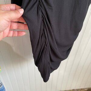 SheBird Dress Womens 2 Black Ruched Built In Bra Performance Fitted Stretchy Long Sleeves Goth Grunge