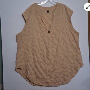 SheIn Curve Womens 4XL Sleeveless Top Beige Pattern V-Neck Plus Size Blouse E30