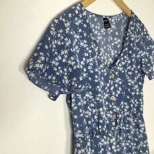 An adorable light weight ruffle dress. V cut neck, flutter sleeves, ruffle bottom accent, elastic waist and buttons down the bust. Super thin material so it’s slightly sheer. So cute and comfy.