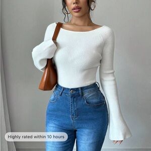 SheIn // Ribbed Off Shoulder Sweater