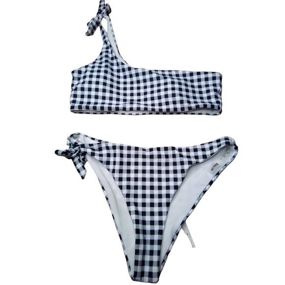 SheIn Blue And White Plaid Bikini 2 piece Swimsuit Size S