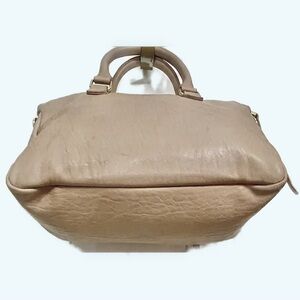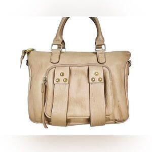 You are viewing a listing for a tan PU satchel bag. Interior has 2 wall pockets and 1 zip pocket. Measures approximately 11”L x 8.5”H x and 4”D. Very good condition. Smoke-free environment.