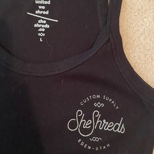 SheShreds Razorback style tank top. Form fitting. Size large. Worn once. No rips, tears or holes. Smoke free home.