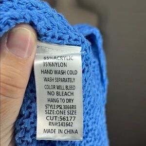Stylish blue knit poncho with a loose fit. Perfect for layering.