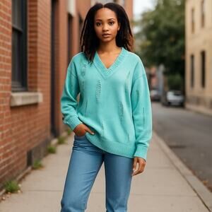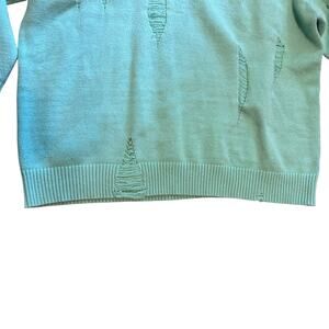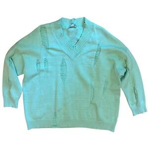She+Sky Women Pullover Knit Green Distressed Sweater OSFM Boho Lagenlook Office