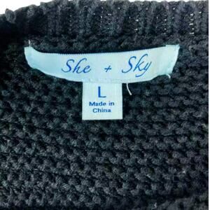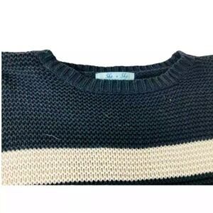 She+Sky Womens Black Multi Colored Back Slit Striped Chunky Knit Sweater Large