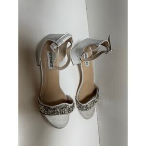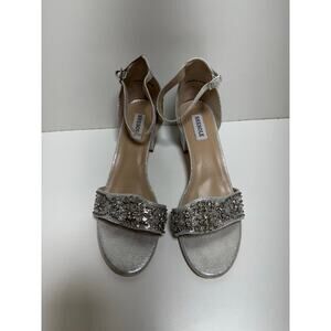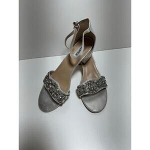 SheSole Women’s Open Toe Chunky Low Heels Silver Sequin Sz 41 US 10 Party