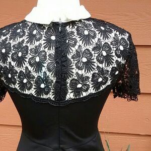 NWT Sweet little black dress with a sexy twist. Back zip, fit and flare style. Yoke of bodice and top of back are black lace topped with a white collar. 70 % cotton, 30 rayon for comfort all year. This fits my size 5 mannequin perfectly.Size S/6 measures 36 at chest, 28 at waist( there is stretch) 42 at hips, 35 long from shoulder to hem. Perfect for work or play.