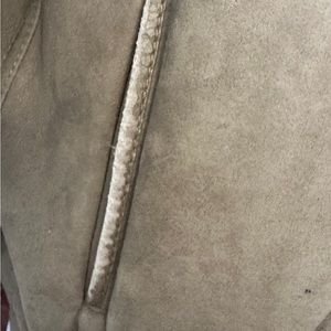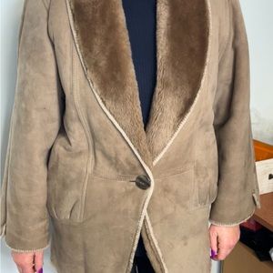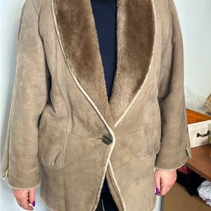 Shearling Italian jacket 100% natural fur beige color one button two pockets