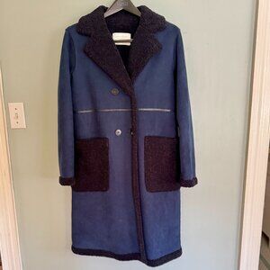 Shearling Style Long Coat in Navy