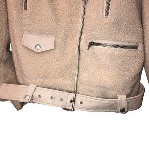 Levi Strauss & Co AS NEW cream fleece faux leather trim bomber jacket S