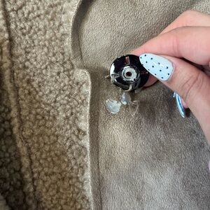 Shearling jacket Super soft faux fur Perfect to throw over any outfit Keeps you super warm Has a loose button that is still attached