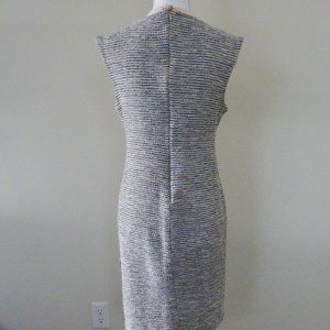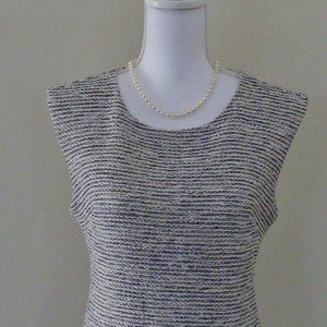 Banana Republic Sheath Dress, sz 10. Sleeveless, Round Neck, Invisible Back Zipper, Lined. Boucle Fabric, Cream/Black/Gray/Silver threads. 63% Cotton, 19% Polyester, 18% Rayon Viscose. Great Condition.
