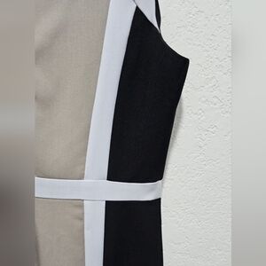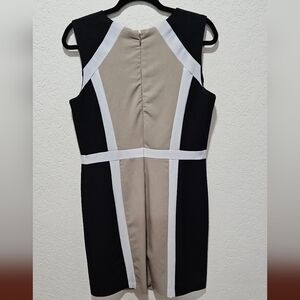 Sheath Dress Black White Khaki Sleeveless Colorblock Size 10