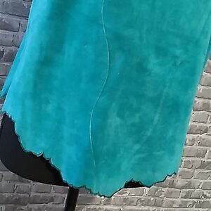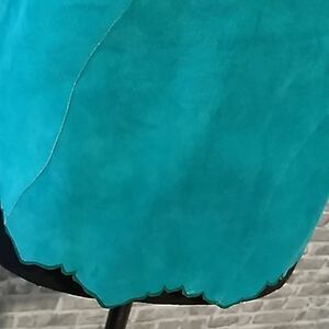 teal blue suede cropped spaghetti strap tank top