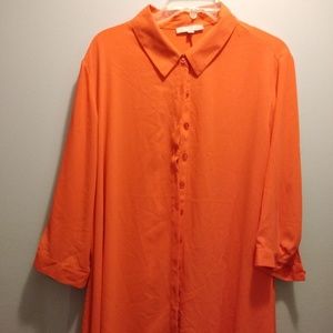 Orange sheer 3/4 sleeves button up tunic style. A1