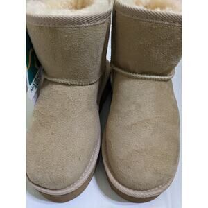 The boots are made from high-quality suede and lined with cozy sheepskin, providing insulation and keeping your feet warm all winter long. These boots are ideal for travel and casual occasions, and will go well with any outfit. They are available in size M3/W5 and are brand new. Add a touch of Australian style to your wardrobe with these stylish and comfortable booties.