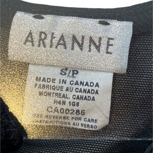 Deep within the realm of enchanting fashion, there exists a sheer black corset crafted from a magical blend of nylon and lycra. Designed by the esteemed Arianne, this creation envelops the wearer in elegance and allure. Its intricate design whispers tales of sophistication and style, captivating all who behold it.