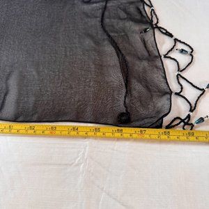Sheer Black Beaded Fringe Chiffon Sarong Wrap Handmade