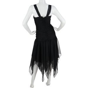 Embrace the night in this sheer black dress, where evening sparkles illuminate its timeless elegance. Featuring a ruched bodice and a layered skirt that dances with light, this piece merges rebellious black elegance with contemporary flair. It's the epitome of urban chic sophistication, designed for those who command attention. This dress is not just an outfit; it's a statement of avant-garde evening wear that captivates.