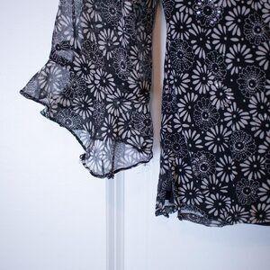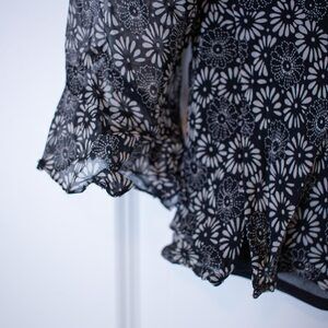 Sheer Black Floral Beaded Blouse NYC Design Co Tie Front Top P Med | True Winter