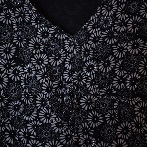 Sheer Black Floral Beaded Blouse NYC Design Co V Neck Petite Medium Tie Front