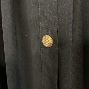 Beautiful sheer black loose flowing top Polyester Gold button accents Shoulder to hem: 25”
