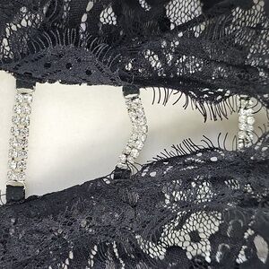 Sexy Sheer Black Lace Nightgown with Crystal Accents at Front. Polyester Spandex. Some Stretch. NWOT. Hand Wash.