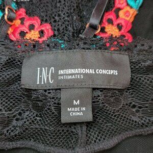 Sheer Black Lace Nightgown With Floral Embroidery & Adjustable Straps By I.N.C.