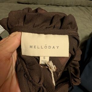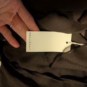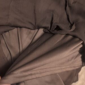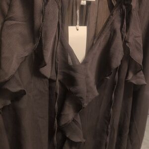 Elevate your style with this elegant sheer brown ruffle blouse. Perfect for any occasion. has a brown tank top underneath. never been worn size small