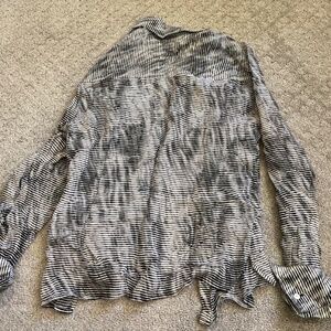 Super flattering black and white sheer blouse. Very breathable and can be dressed up or dressed down.