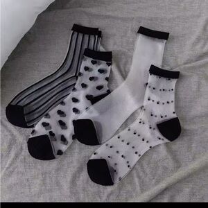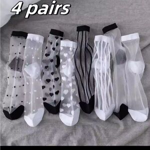 Add a touch of elegance to your wardrobe with these sheer black and white socks. Featuring a charming heart pattern, these socks are perfect for any occasion. Enjoy comfort and style with this 4-pair set.